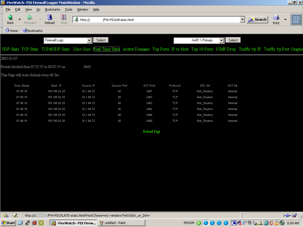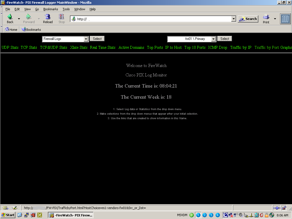 UPDATEFireWatchPIX Released 6/May/2005. FireWatchPIX provides logging and real time display of Cisco PIX Firewalls